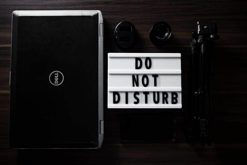 PDF Do Not Disturb signs come in diverse formats. For home use, designs prioritize quiet and privacy, often featuring calming imagery. For office settings, signs emphasize focus and meeting confidentiality, sometimes including “Meeting in Progress” variations.